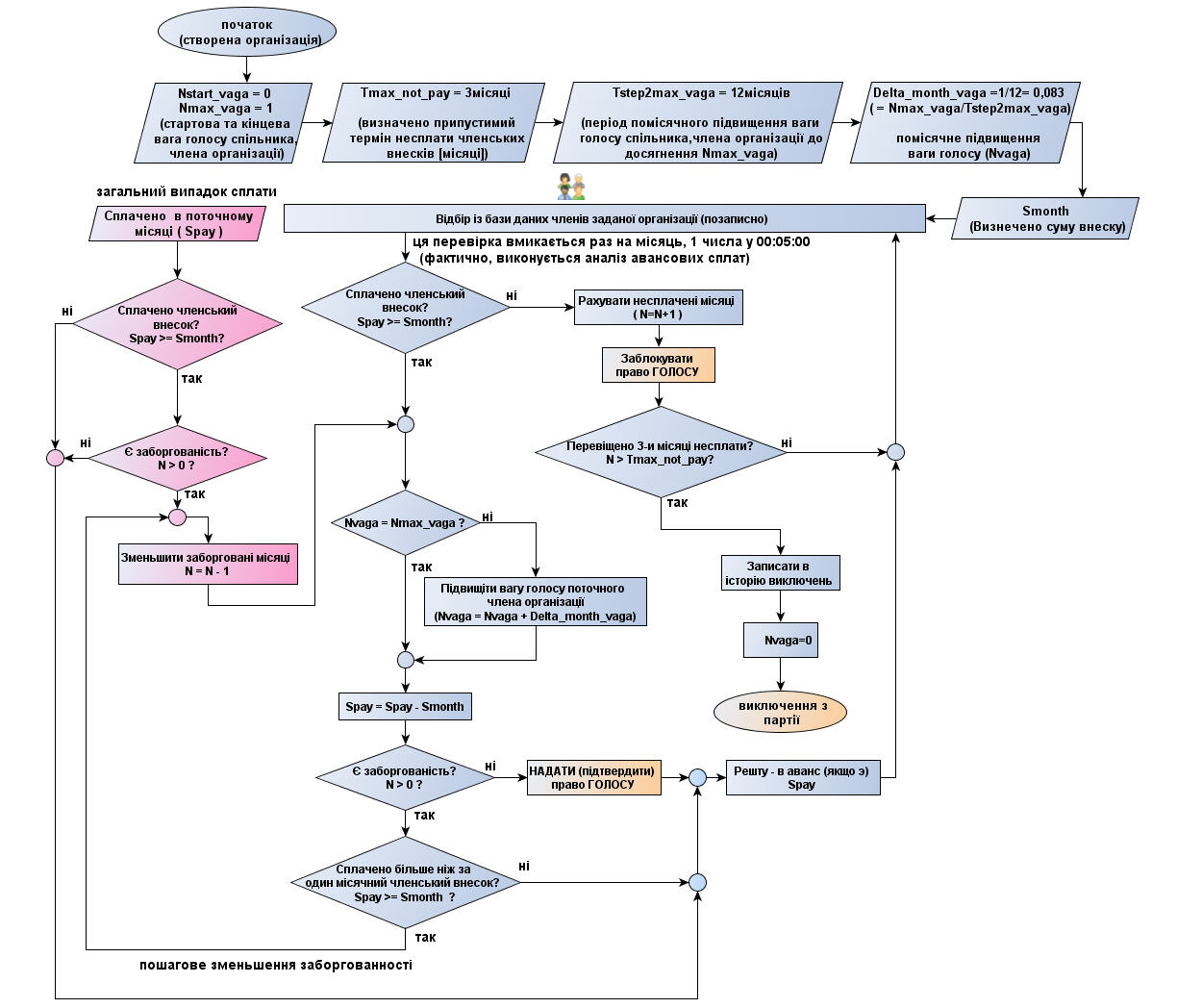 • Інтеграція бухгалтерії з алгоритмом голосування та шаблонами документів.