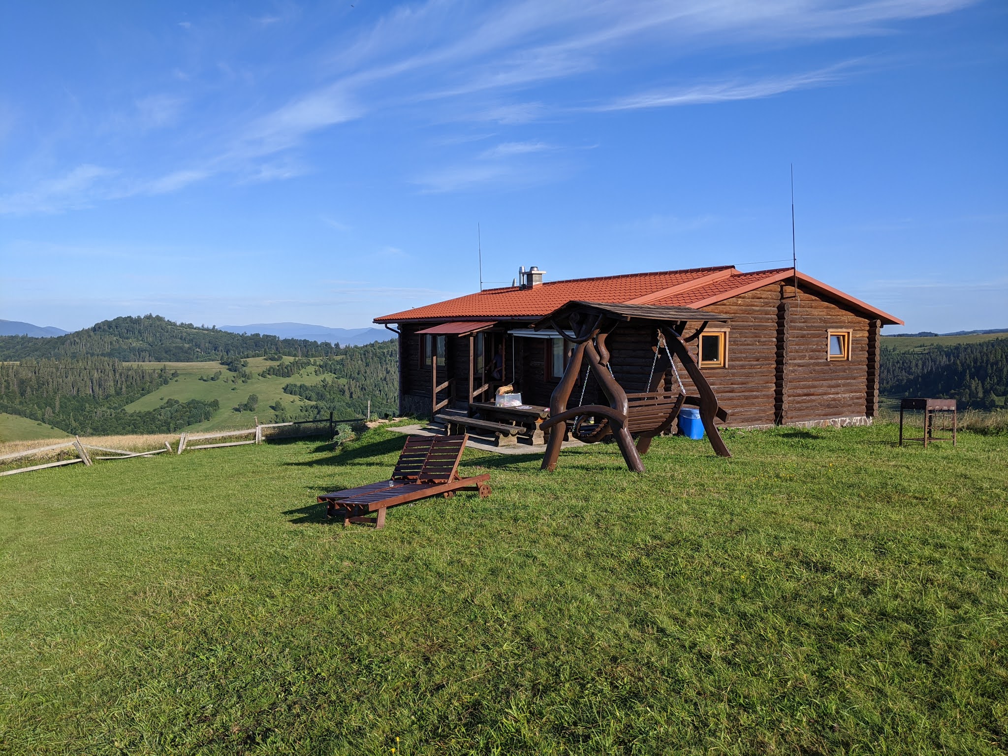 За домом находится небольшая площадка с местом под гриль, лавочками, детской игровой зоной.
