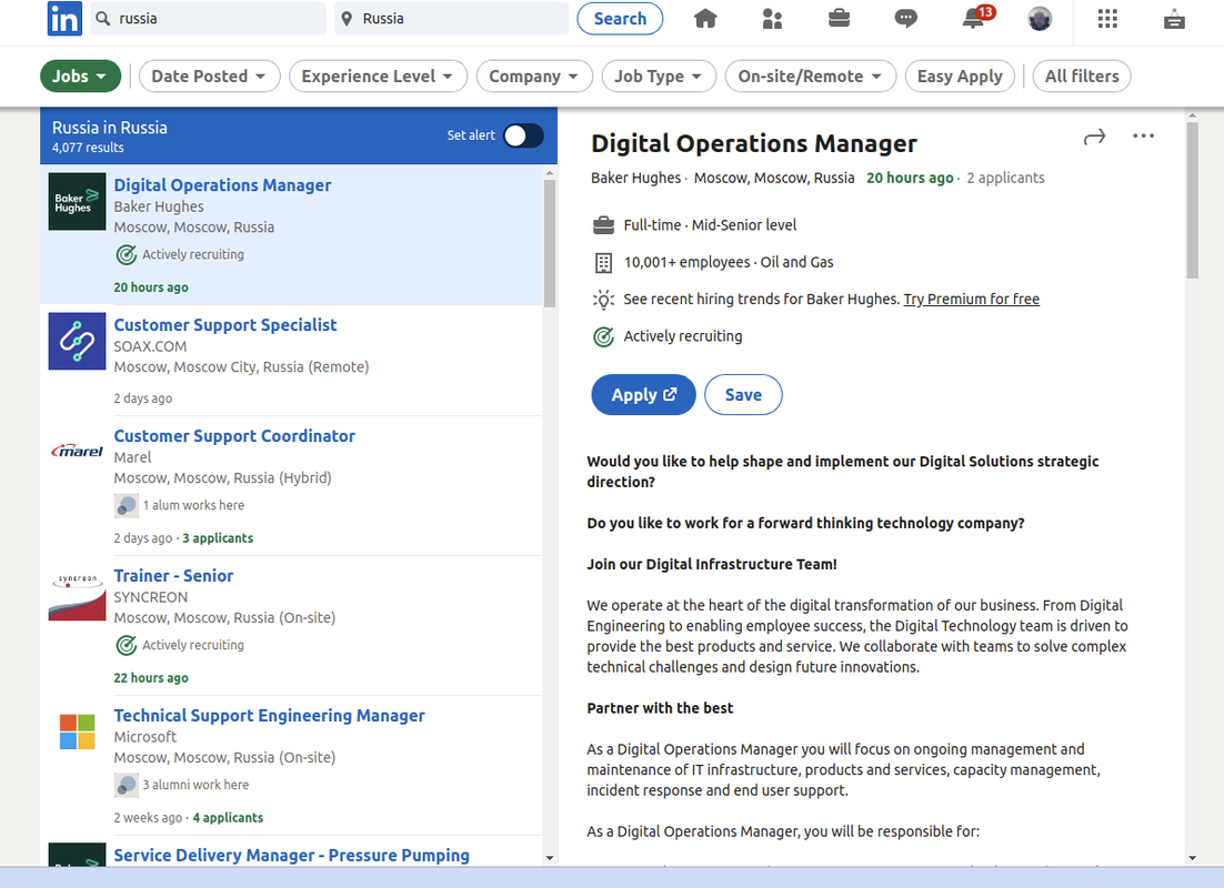 На ньому видно, що 20 годин тому було оголошення від московської компанії про наймання. Гроші не пахнуть?