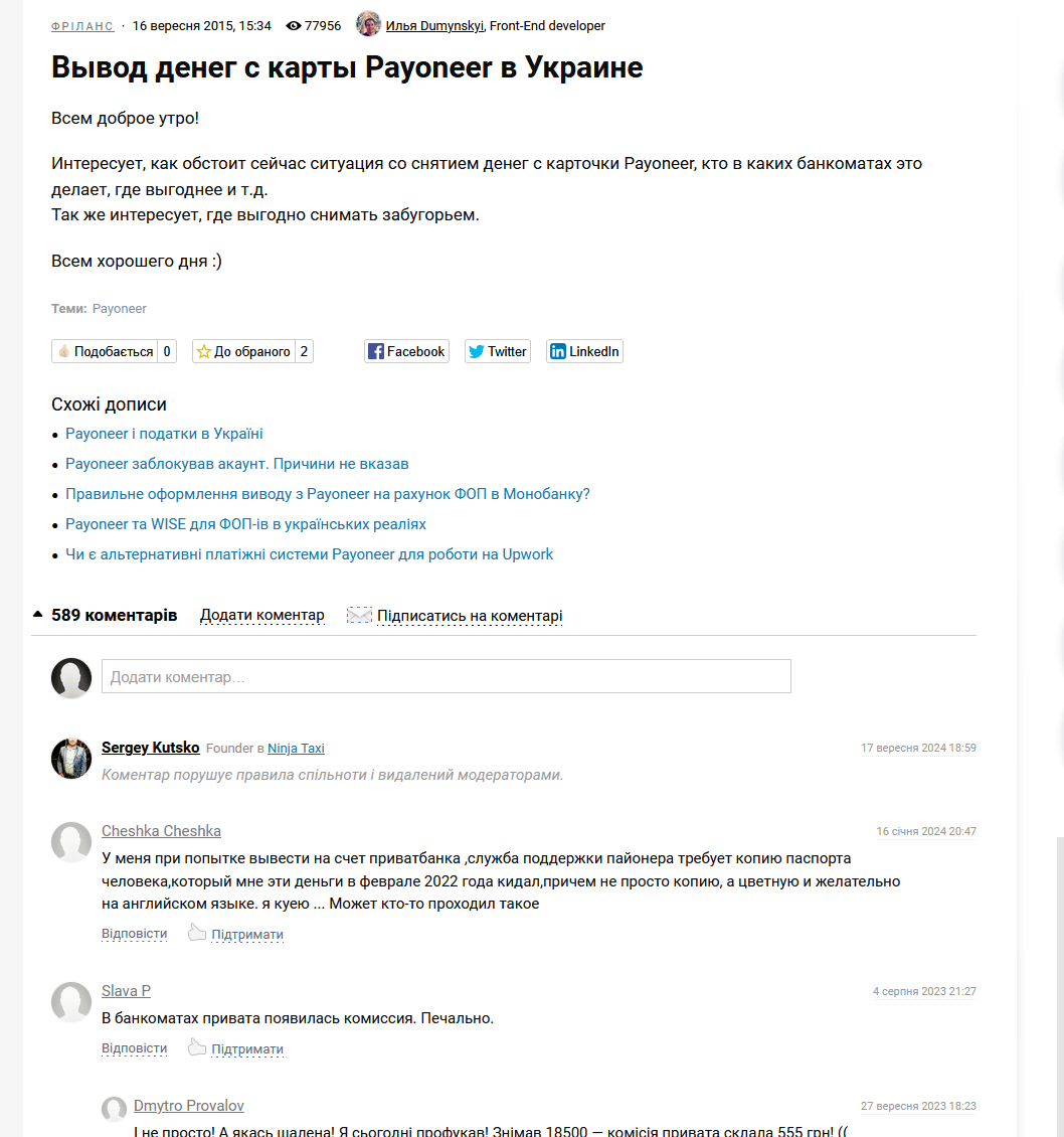 Доброго дня спільнота! Потрапив у дуже неприємну ситуацію з платіжною системою Payoneer. Поділюсь своїм досвідом можливо це комусь допоможе не допустити моїх помилок при взаємодії з цією системою.