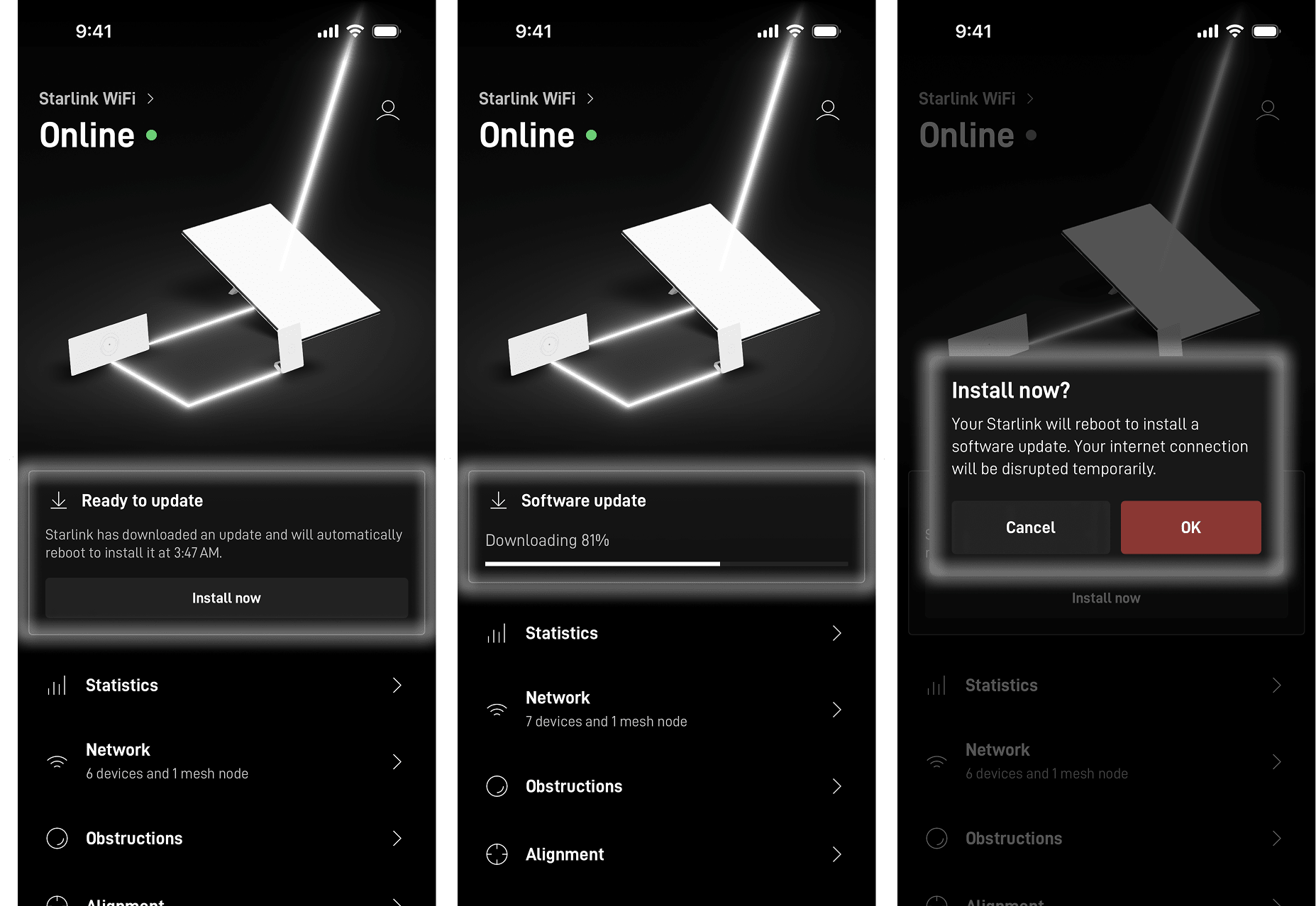 Для оновлення ПЗ термінала не має значення чи він активований, наявність боргу чи блокування послуг за неоплату — будь яка апаратна ревізія Starlink може бути оновлена автоматично або в ручну. Детальніше в публікації SkyLinker.
