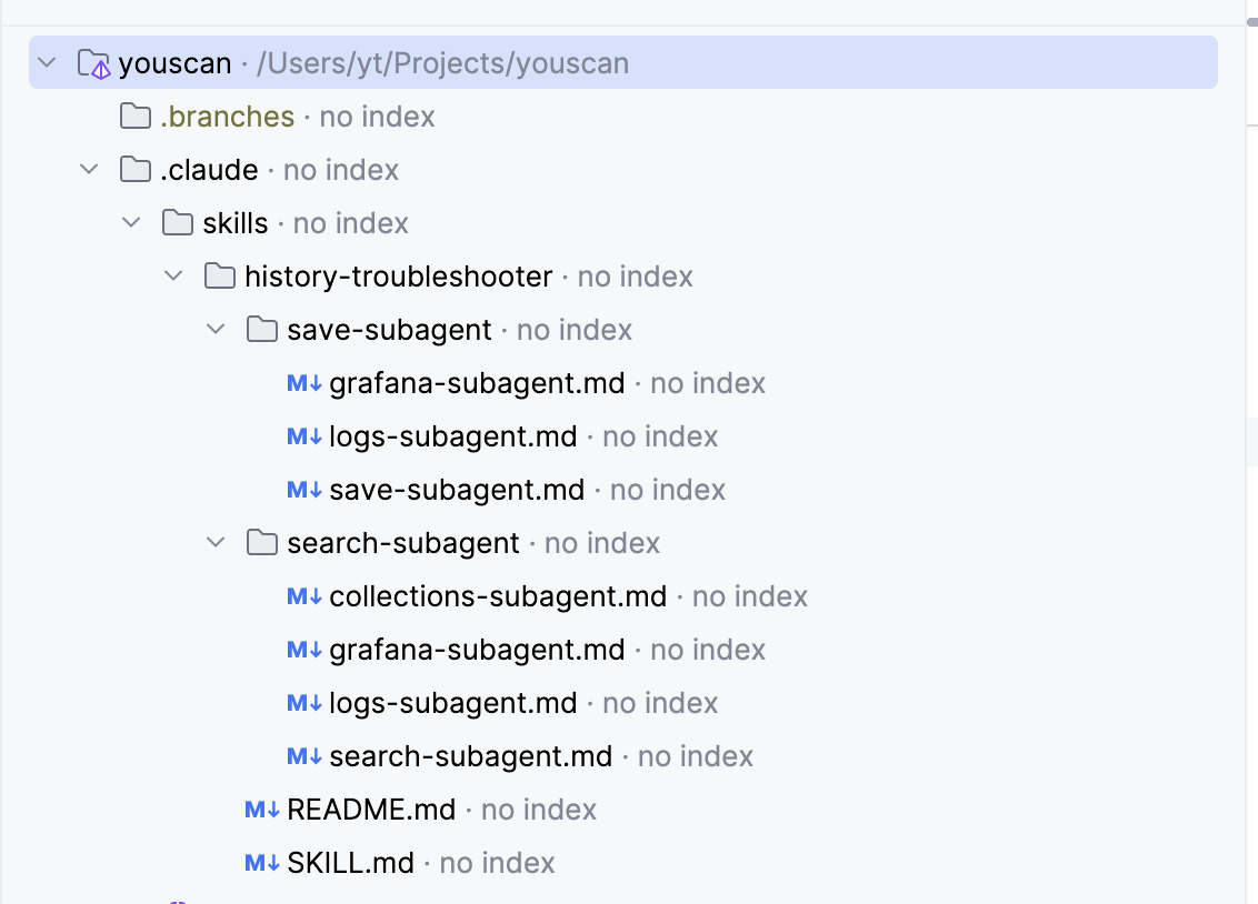 Головний Оркестратор (SKILL.md) ├── Координатор фази пошуку (search-subagent.md) │ ├── Агент аналізу зборів (API запити) │ ├── Агент стану кластера (метрики Grafana) │ └── Агент логів помилок (логи Elasticsearch) └── Координатор фази збереження (save-subagent.md) ├── Агент аналізу повільного збереження (логи Elasticsearch) └── Агент зовнішніх сервісів (показники помилок Grafana)
