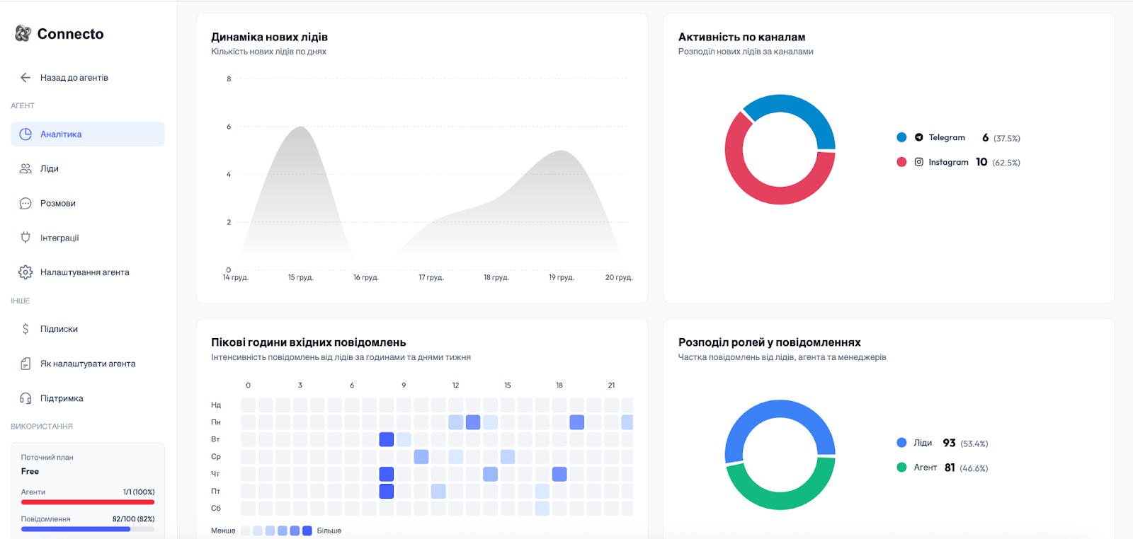 - Інтегрується в Telegram, Instagram, віджетом на сайт.