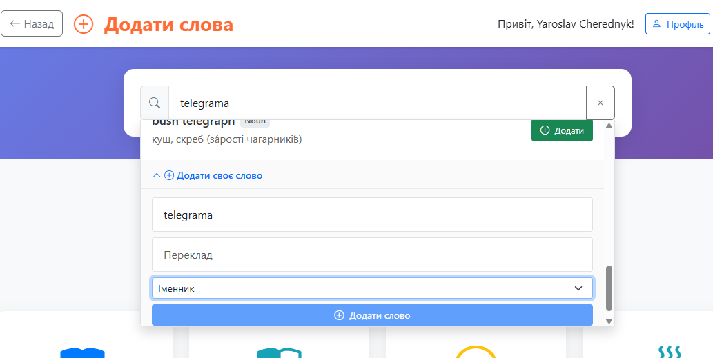 - Фічі, яких бракує: Що б ви додали до словникових тренувань? (Інтервальні повторення, озвучка слів, асоціативні картинки чи, можливо, інтеграція з AI для генерації прикладів вживання?).