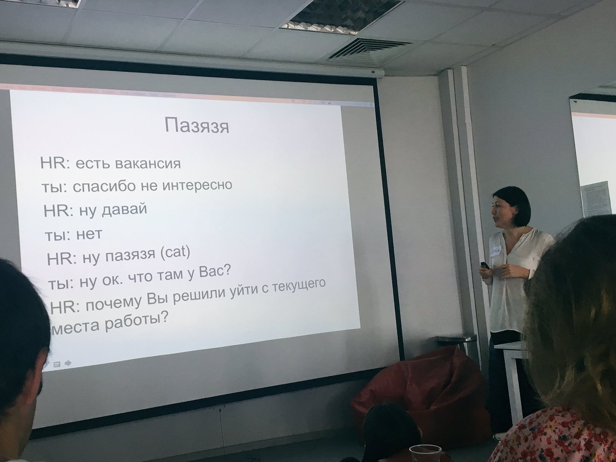 Пічаль і біда в тому, що вона продовжила ставити додаткові питаннями: «А як ви думаєте, що ваша компанія вам скаже, якщо ви будете звільнятися?», «Як вони поставляться до такої новини?». То просто є мем про це, але ця HR його не бачила. pbs.twimg.com/...media/DChCFnpXgAASmfU.jpg